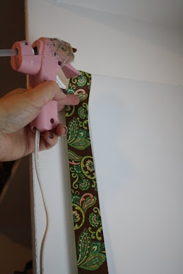 And here's where my really awesome disgusting albeit trusty pink glue gun makes her appearance. I glued this ribbon to the edge of the metal to finish it off.