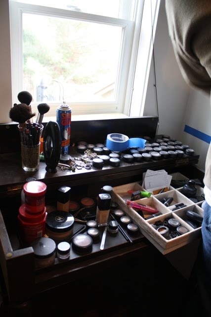 Ok. So remember when I posted about my serious MAC eyeshadow addiction? Well, I still have it. Haven't kicked the habit, don't know if I ever will! Anyway, when we moved into the house a few months back I literally heaped all my makeup on this little table in my closet and have been trying to get to organizing it.