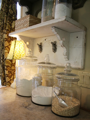 6. And those glass jars- I found them at Tuesday Morning about 3 years ago. They're so cute, but I could only find the sugar, coffee and tea. Never found the flour:( Since the words are written in French, (yet another language I took in high school and never quite paid much attention too, I can however sing frere jacques pretty good because that's how we earned extra credit and I do have the most adorable Frenchie ever...) I just choose to ignore what is written and pretend it says Flour, Sugar and Oatmeal:)