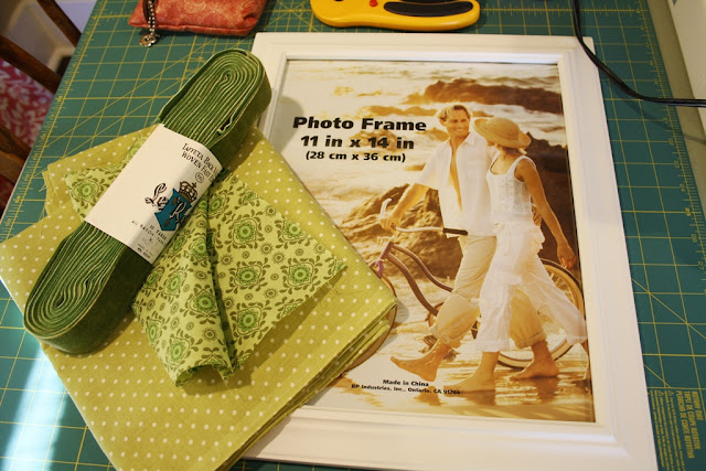 Ok, so it's no secret that I love me some green:) A lot. A whole lot. So this last Saturday in a moment of boredom (and when I say boredom, I mean avoid-dom. you know, avoiding the things I should be doing like laundry and cleaning floors) I thought Hey! It's St. Patty's day coming up and I'm going to make me a Shamrock! I found this frame at Joanne for 50% off. I had the scraps of fabric, and the velvet ribbon came from the fab once a month sale that is Sweet Salvage:)